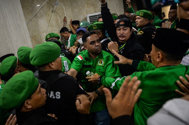 Kericuhan terjadi di Muktamar PPP. Ada dua kubu yang mengeklaim kemenangan dan menjadi ketum terpilih secara aklamasi untuk kepengurusan 2025-2030, yakni Mardiono dan Agus Suparmanto.