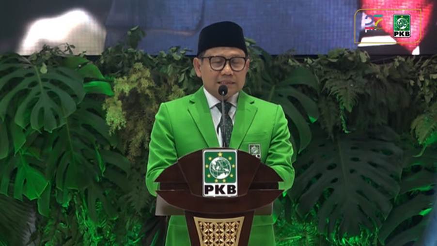Ketua Umum PKB Muhaimin Iskandar memberikan sambutan saat Harlah ke-27 Partai PKB di JCC, Jakarta, Rabu (23/7/2025). Foto: Youtube/DPP PKB