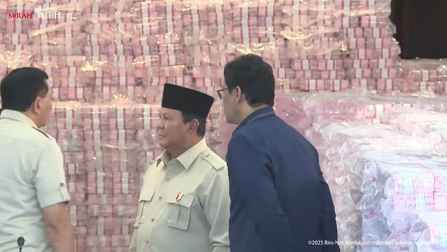 Begitu tiba, Prabowo langsung mendatangi tumpukan uang tunai Rp 6,6 triliun tersebut. Dia tampak sempat berbincang sebentar dengan Menhan dan Jaksa Agung.
